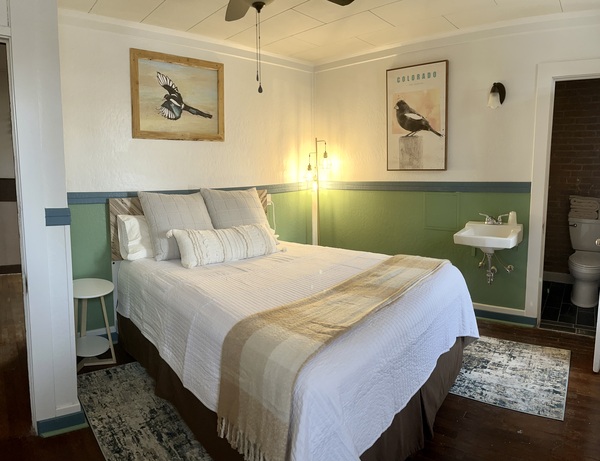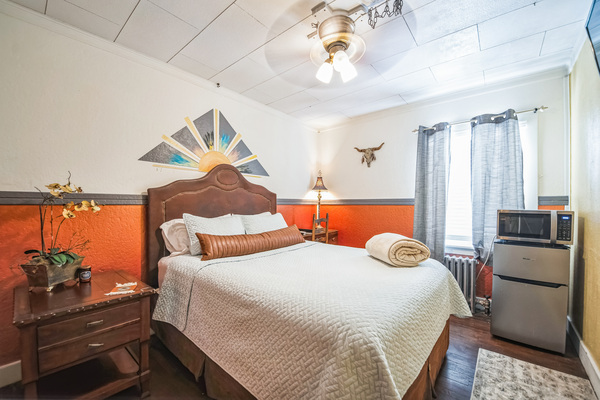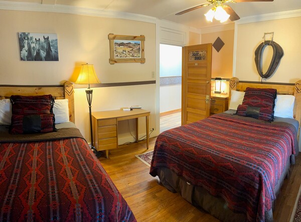The Painted Desert Room is one of five bedrooms in our Western wing. In addition to the clean, comfortable beds and linens shared throughout the Hotel, Painted Desert features:Queen-sized bed