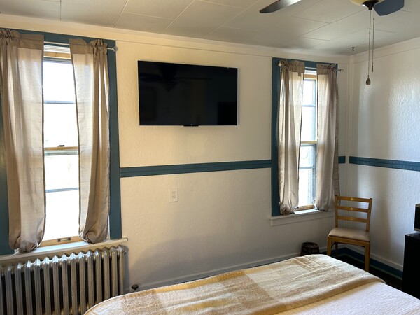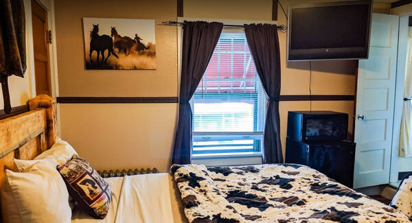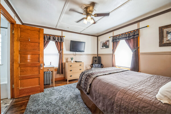 The Cheyenne Room is one of five bedrooms in our Western wing. In addition to the clean, comfortable beds and linens shared throughout the Hotel, Cheyenne features: 1 Queen-sized bed Flatscreen TV