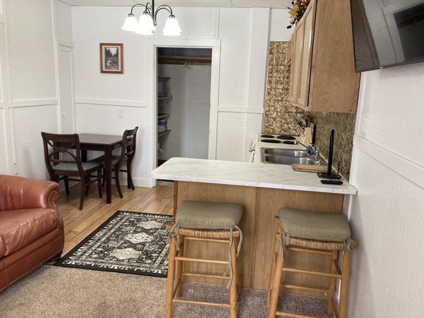 The Little House apartment offers central living with your own private space and separate private entrance. It has 1 bedroom, 1 bathroom, kitchen, livingroom, dining or work area. Available nightly, weekly or monthly. Call for weekly or monthly rentals.