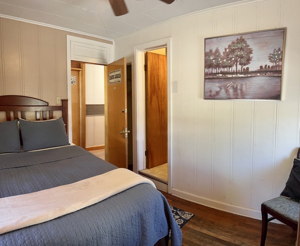 In addition to the clean, comfortable beds and linens featured throughout the Hotel, room 108 featuresQueen-sized bed